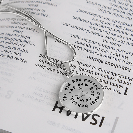 Luxury Graphic Circle Necklace | “The Old Has Passed Away, The New Has Come” Christian Gift | Elyvie