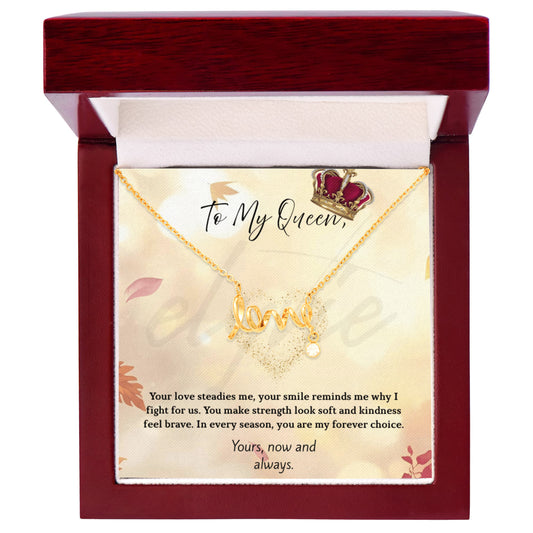 To My Queen (Wife) - Scripted Love Necklace | Elegant Family Jewelry Gift for Her | Elyvie