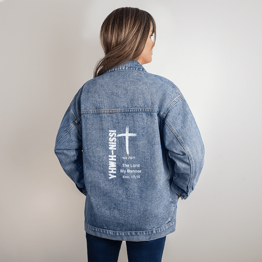 Oversized Women's DTG Denim Jacket YHWH-Nissi The Lord My Banner