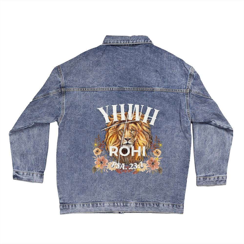 Oversized Women's DTG Denim Jacket The Names of God YHWH-Rohi The Lord My Shepherd