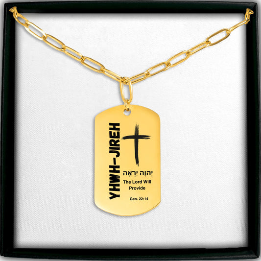 The Names of God Paperclip Tag Necklace YHWH-Jireh, The Lord Will Provide