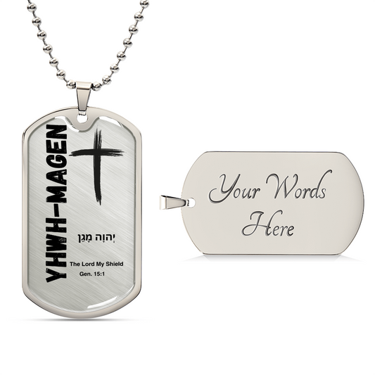 YHWH-Magen The Lord My Shield The Names of God Luxury Graphic Dog Tag Necklace