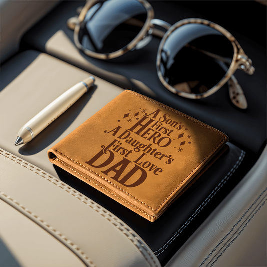 A Son's First Hero A daughter's First Love Dad Graphic Leather Wallet Father's Day Gift for Father, Gift for Dad