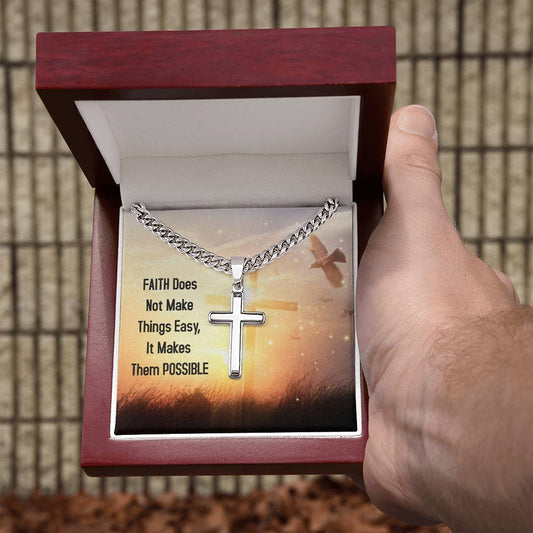 Cuban Link Chain with Artisan Cross I Am With You perfect for Man, Husband, Dad, Grandpa, Soulmate