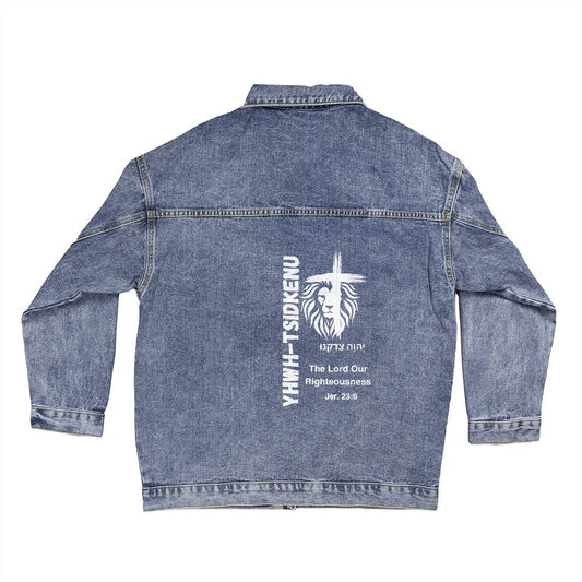Oversized Women's DTG Denim Jacket The Names of God YHWH-TsidkenuThe Lord Our Righteousness