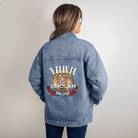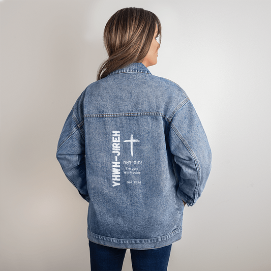 Oversized Women's DTG Denim Jacket YHWH-Jireh The Lord Will Provide
