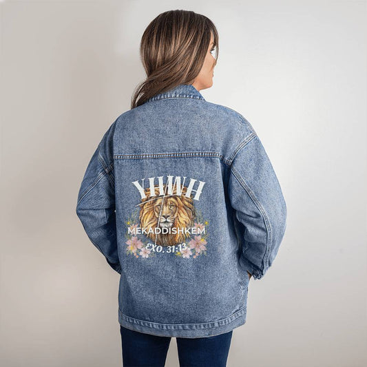 Oversized Women's DTG Denim Jacket YHWH-Mekaddishkem The Names of God The Lord Who Sanctifies