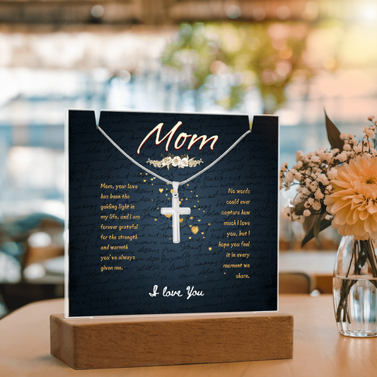 Mom, your love has been the guiding light in my life Keepsake Acrylic & Stainless Steel Cross Necklace
