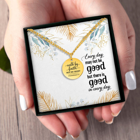 Cuban Coin Necklace Walk By Faith, Not By Sight