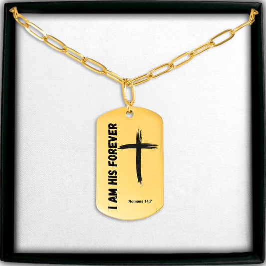 Psalm 139 Series Paperclip Tag Necklace for Women of Faith - "I Am His Forever" (Romans 14:7)